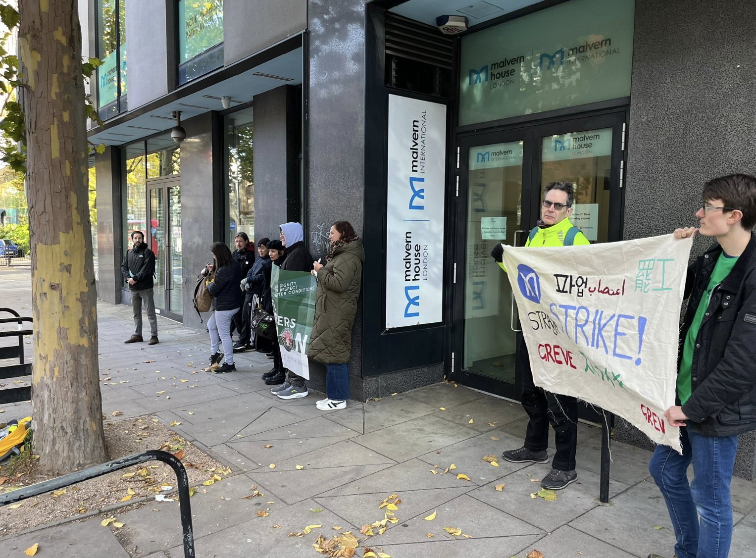 After the initial picket outside of Malvern House, strikers then leafleted students and staff at the University of East London where Malvern International also runs language courses. The response from both the students and fellow teachers was very positive, with many sharing their agreement with the strikers’ demands and disappointment towards the management.